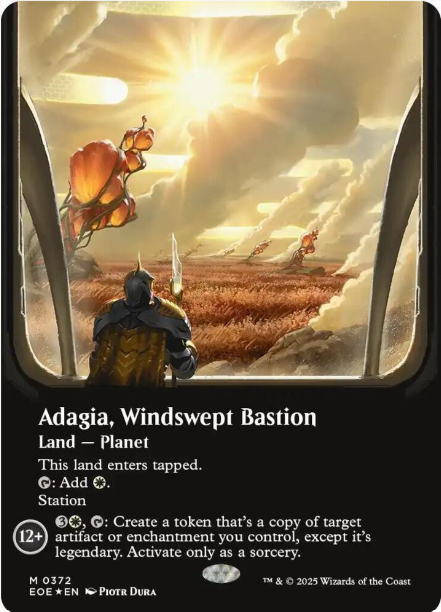 • 1 doppelseitiger traditioneller Premium-Spielstein mit einer Kombination aus 5 Karten der Seltenheit „Selten“ oder höher, 3–5 „Uncommon“, 4–6 „Common“ und 1 „Full-Art“-Land-Karte. Serialisierte Karte in <1 % der Booster.