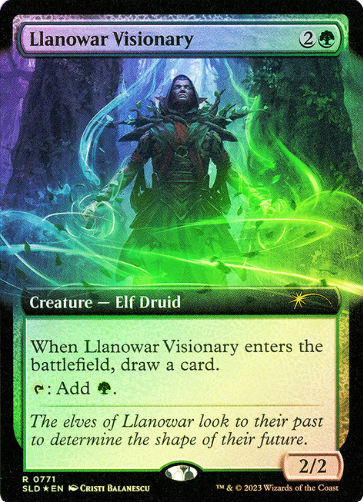 • 1 doppelseitiger traditioneller Premium-Spielstein mit einer Kombination aus 5 Karten der Seltenheit „Selten“ oder höher, 3–5 „Uncommon“, 4–6 „Common“ und 1 „Full-Art“-Land-Karte. Serialisierte Karte in <1 % der Booster.