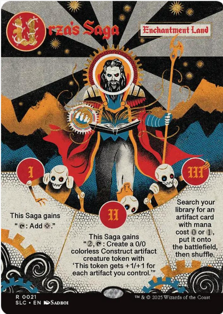 • 1 doppelseitiger traditioneller Premium-Spielstein mit einer Kombination aus 5 Karten der Seltenheit „Selten“ oder höher, 3–5 „Uncommon“, 4–6 „Common“ und 1 „Full-Art“-Land-Karte. Serialisierte Karte in <1 % der Booster.