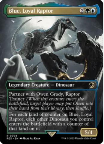 Foil Blue, Loyal Raptor (Borderless) - Universes Beyond: Jurassic World Collection (REX) - NM